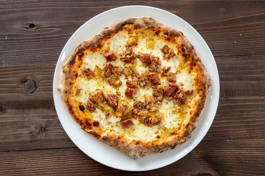 汲みたての毘沙門水を使った手ごね生地は、国産小麦4種をブレンドしたこだわりの生地。