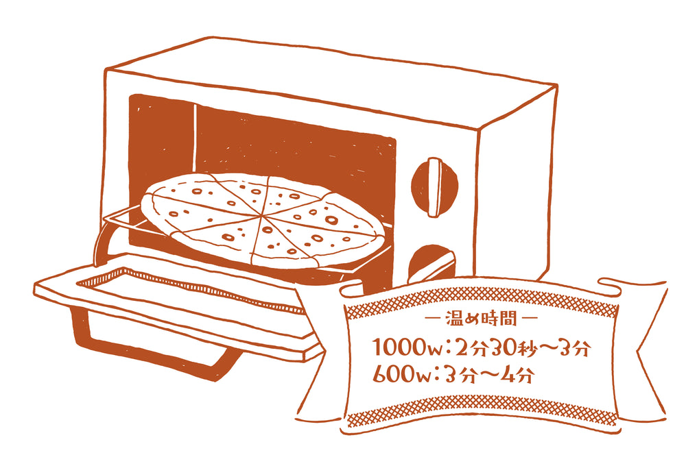 解凍したピッツァを袋から取り出し、オーブントースターで温めていきます。